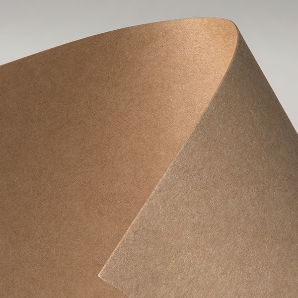 Cartón de alta resistencia, todo el pliego es marrón sin estuco con un alto porcentaje de fibra virgen, flexible e imprimible.
