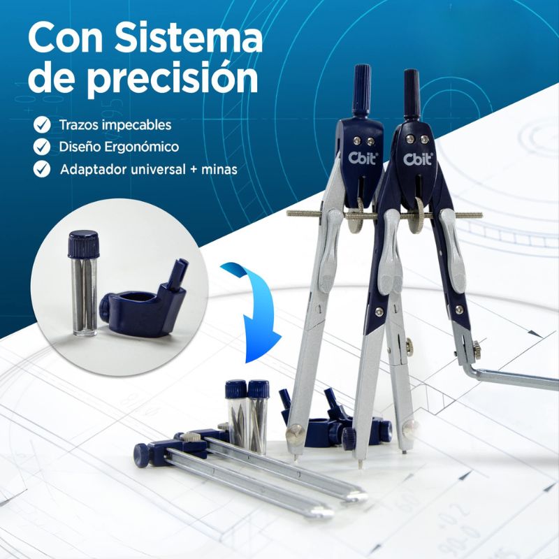 ¡Traza círculos perfectos y mide con exactitud! El compás de precisión CBIT es tu aliado para dibujos técnicos, geometría y diseños detallados.