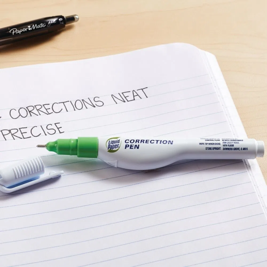 Lápiz corrector Liquid Paper, cubre errores de forma limpia y precisa. La punta del lápiz corrector provee cobertura controlada, incluso para los errores más pequeños. Punta fina, 7.0ml