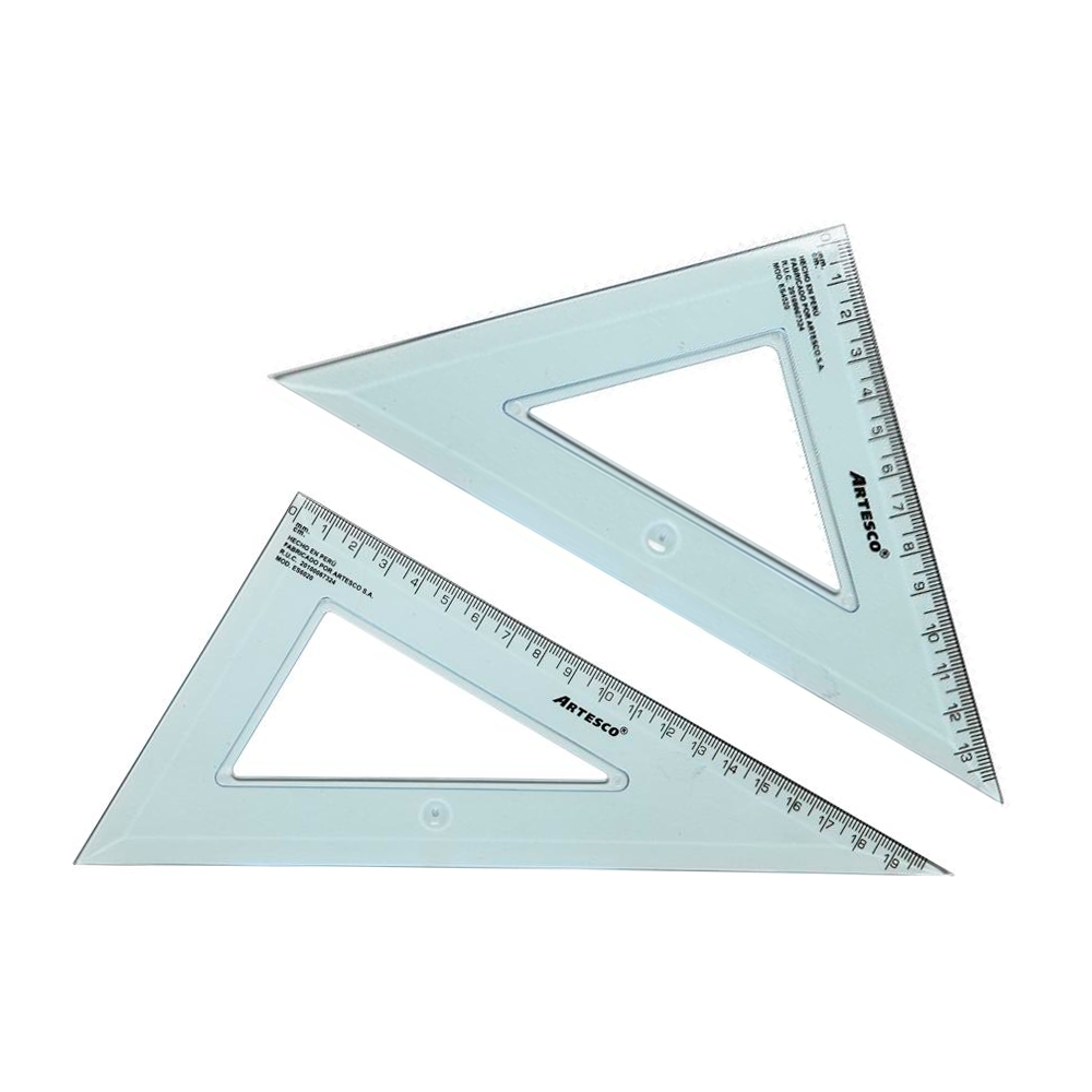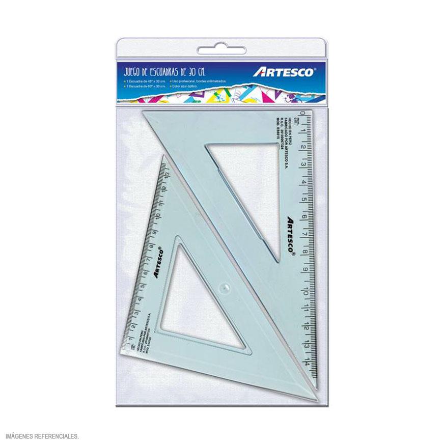 Escuadra plástica estable y azulado transparente. mide 30cm (45, 60 grados). Con bisel y con numeración.