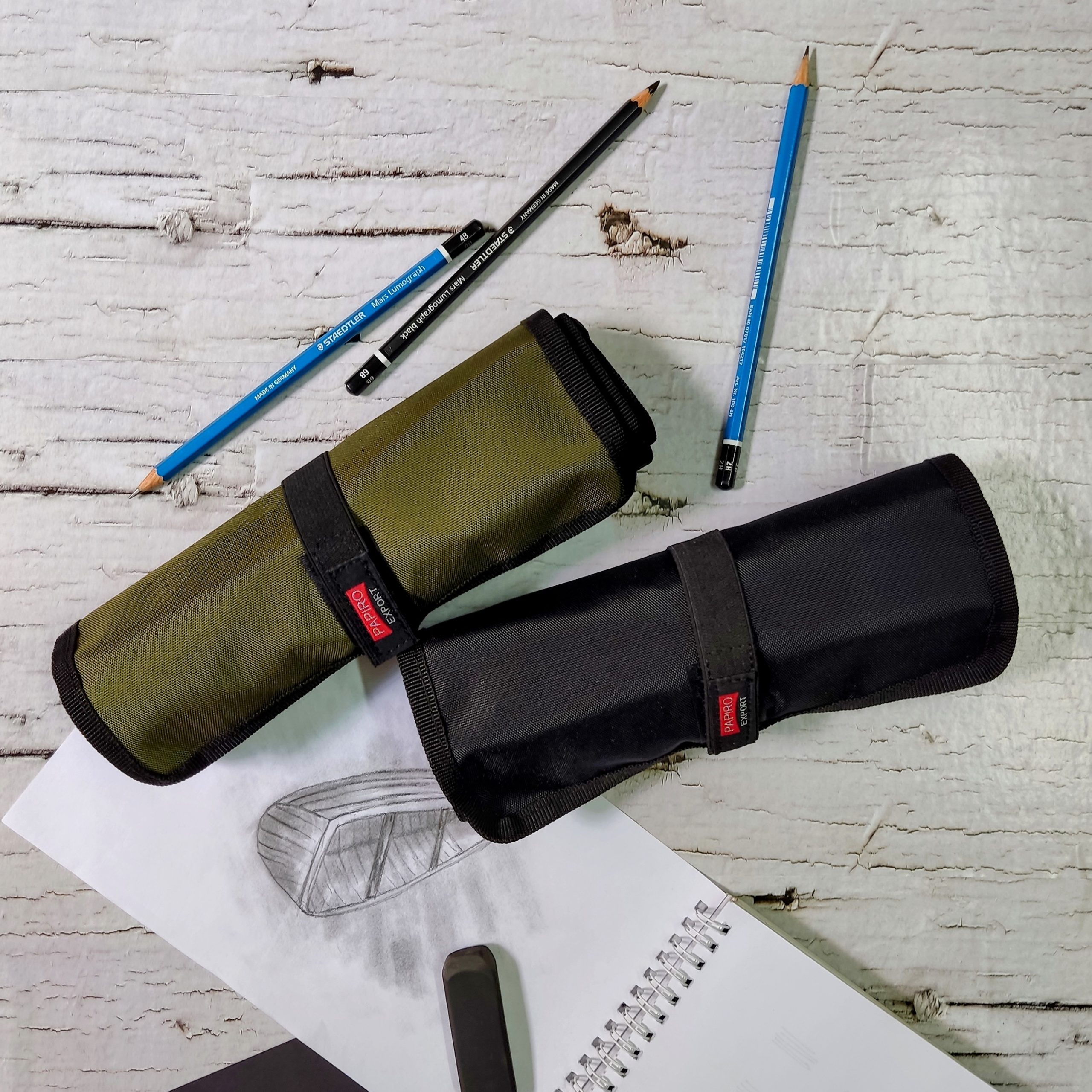 Estuche enrollable de tela ideal para guardar lápices, colores, rotuladores delegados, lapiceros, difuminos y mas. Los estuches tienen ligas gruesas que aseguran los lápices y enrollarlos con facilidad.
