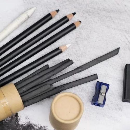 Lápiz De Carbón Calidad De Artista. Línea Negro Azulada, Puede Afilarse Con Cuchillo O Máquina. Puede Borrarse Con Facilidad Y Superponerse Repetidamente. No graso