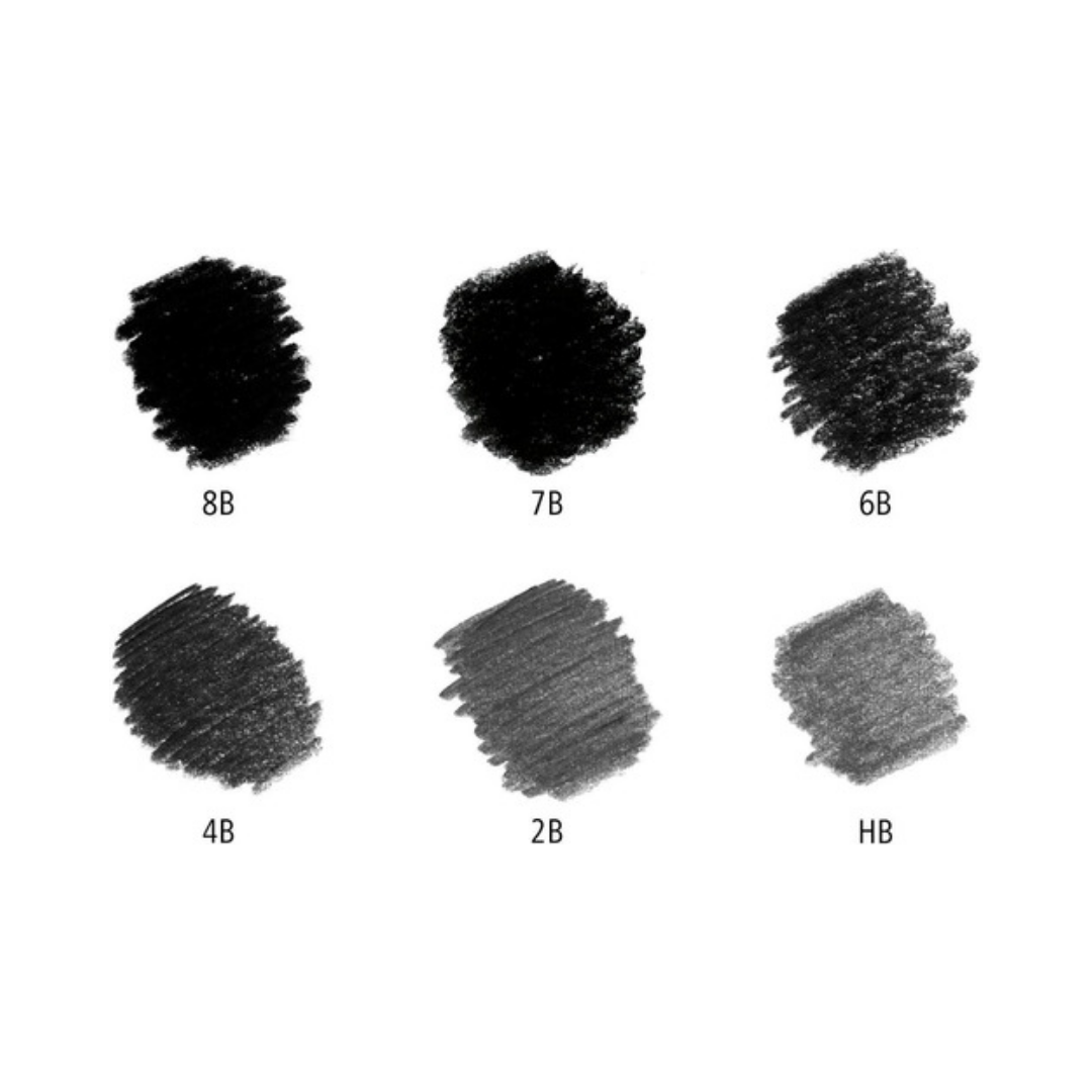 • 2B: un balance ideal para dibujar y sombrear sin ensuciar demasiado; muy versátil.