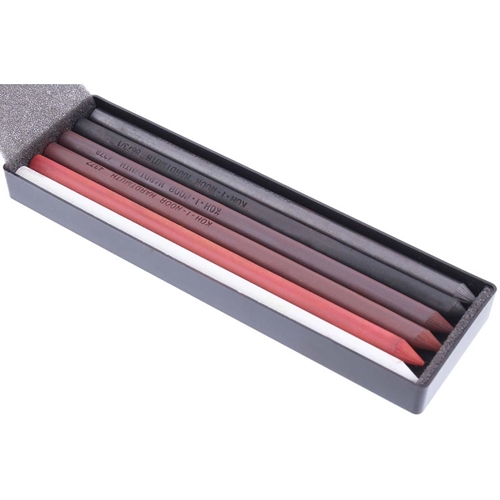 Juego de 6 minas de diametro de 5,6 mm y de 120mm de largo, colores grafito, carboncillo, sanguina, cera blanca, sepia clara y sepia oscura. Idea para ser usados en papeles claros u oscuros. Pueden ser usados por portaminas 5.66mm